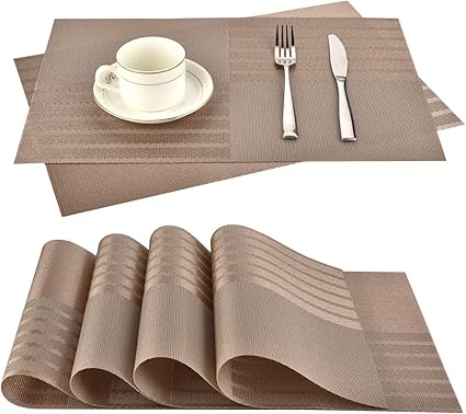 Peach Echo Fishnet Oval Placemat Set of 12 4499. Hamiltonna Woven Vinyl Placemats for Dining Table Set of 6 PVC Place Mats Heat Insulation Tablemats Table Mats 6 pcs Red Gray Black White Geometric Square 40 out of 5 stars 69 2199 21. Simple but beautiful theyll blend in easily on the family dinner table beneath dinner plates brimming with exquisite home-cooked food.