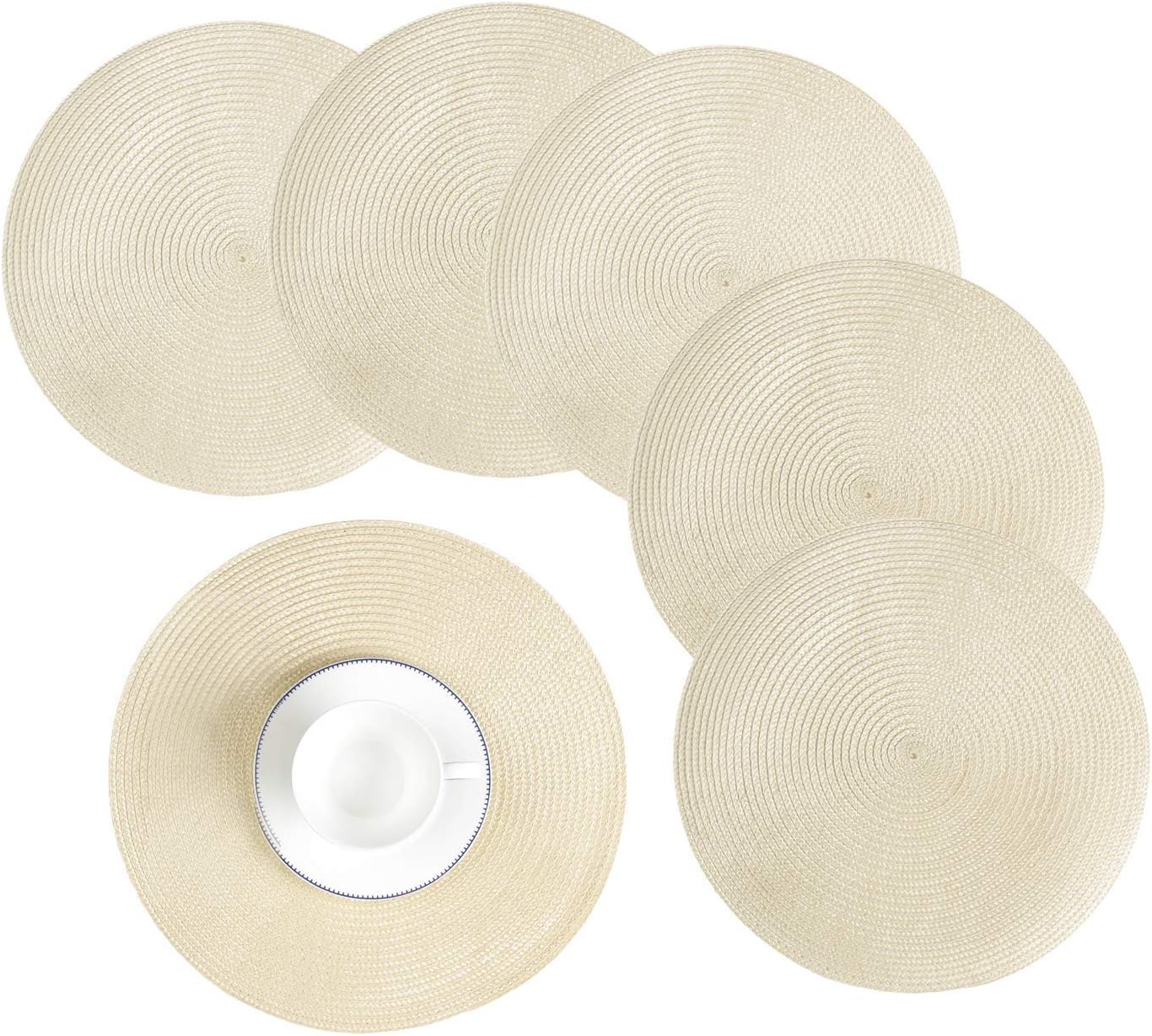 Homcomodar Round Placemats Set Of 6 Heat Resistant Round Braided Woven Place Mats For Dining Kitchen Table Beige Amazon Co Uk Kitchen Home