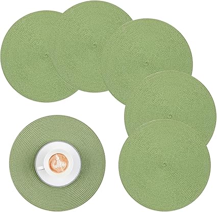 Homcomodar Round Placemats Heat Resistant Pp Round Placemats Sets Braided Weave Round Table Mats For Kitchen Round Place Mats Set Of 6 34cm Green Amazon Co Uk Kitchen Home