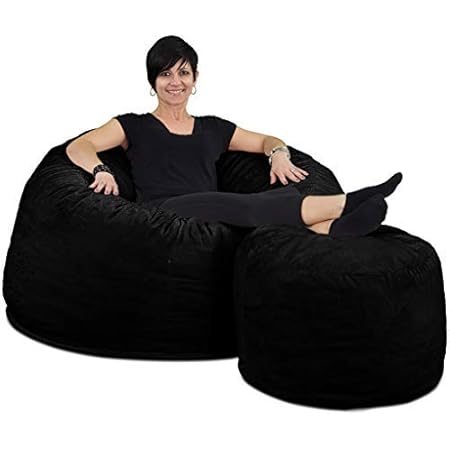 Amazon Com Ultimate Sack Bean Bag Chair W Foot Stool In Multiple Sizes And Colors Giant Foam Filled Furniture Machine Washable Covers Double Stitched Seams Durable Inner Liner 4000 Black Fur Kitchen Dining