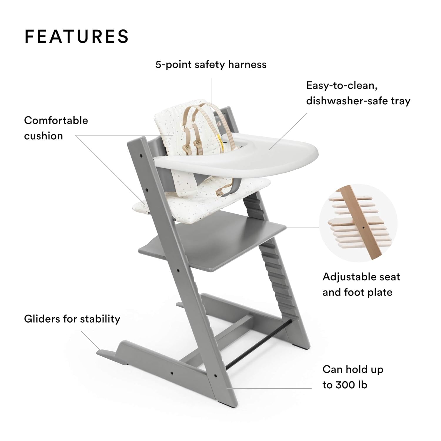 Amazon Com Tripp Trapp High Chair And Cushion With Stokke Tray Hazy Grey With Icon Multicolor Adjustable Convertible All In One High Chair For Babies Toddlers Baby