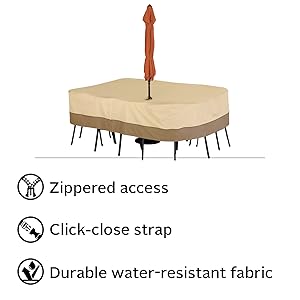 Amazon Com Classic Accessories 55 459 041501 00 Veranda Water Resistant 108 Inch Rectangular Oval Patio Table Chair Set Cover With Umbrella Hole Pebble Large Garden Outdoor