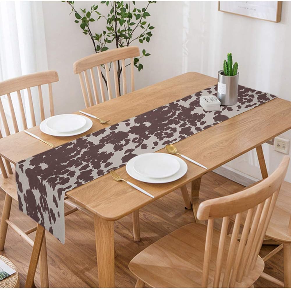 Amazon Com Swono Animal Skin Table Runner Cow Or Horse Print Pattern Design With Big Brown Spots Table Runner Cloth Cotton Linen For Kitchen Coffee Tea Table Dinner Room Non Slip 14 X72 Home Kitchen