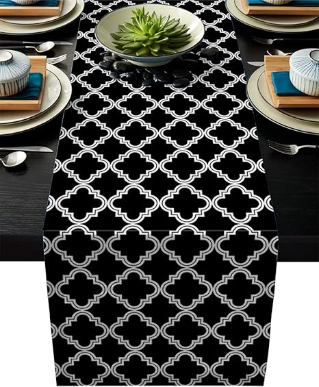 Amazon Com Custom Bed Usa Black White Table Runner 13x70inch Linen Burlap Table Runners Non Slip Heat Resistant Cloth Placemat Home Decor For Wedding Banquet Party Classic Moroccan Trellis Geometric Lattice Home