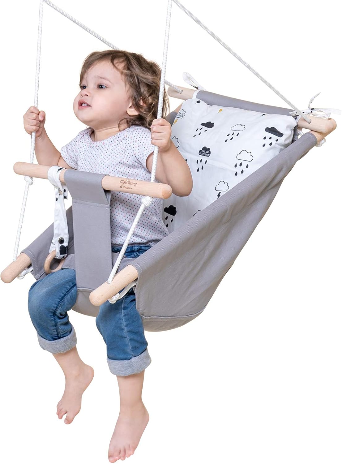 Graco Glider LX Baby Swing at Amazon Designed to sway gently like a glider the seat has a five-point harness to make sure baby stays safe. Ardith Cotton Swing Chair for Kids Babys Children Folding and Washable 1-6 Years with Safety Belt - HomeSwing for KidsGarden Jhula for BabiesBaby Hanging Swing Jula Multi-Color by Ardith 69. Fisher-Price Rainforest Friends Take-Along Swing and Seat New-born Baby Swing Chair with Calming Vibrations Songs and Sounds Suitable from Birth 42 out of 5 stars 5 6799 67.