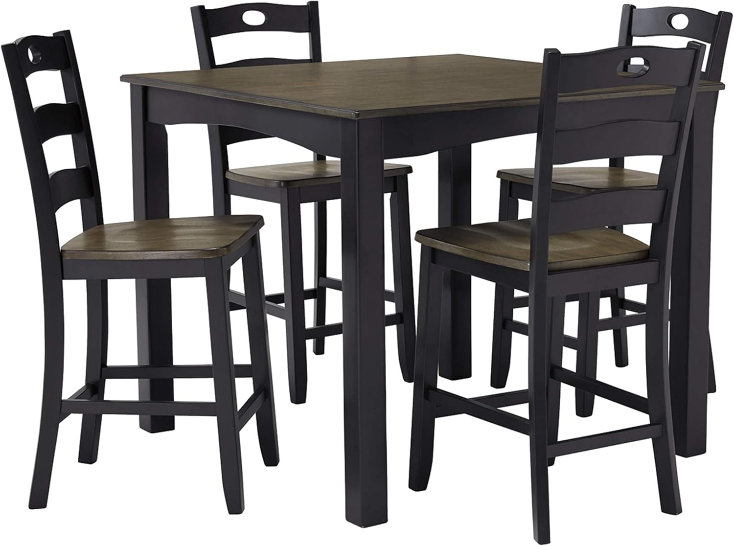 Amazon Com Signature Design By Ashley Froshburg Counter Height Dining Room Table And Bar Stools Set Of 5 Grayish Brown Black Table Chair Sets